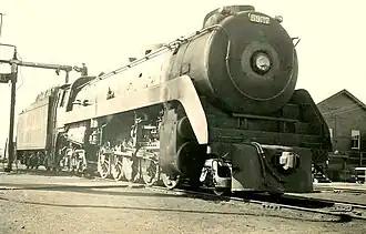 Some small streamlining touches were not retained. The streamlined casing around the smokebox stack was now absent as was the teardrop shape of the classification lights. Also, the inside of the cabs were no longer lined/insulated in the same manner as the previous classes (previous classes had provided better cold-weather cab insulation and were more popular with engine crews). They were all equipped with boosters (some shortly after being built) and all Selkirks (5900 through 5935) were built as oil burners. The tenders held 12,000 imperial gallons (55,000 L; 14,000 US gal) of water and 4,100 imperial gallons (19,000 L; 4,900 US gal) of fuel oil. They had to be equipped with two pairs of six-wheel trucks because the total tender weight was 148 short tons (132 long tons; 134 t).