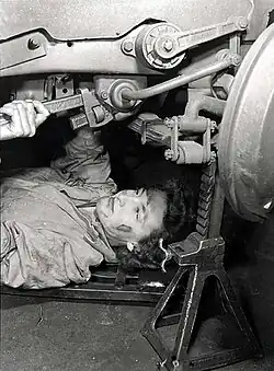 The CWAC and other military organizations were aimed at attracting young women into the Canadian forces during the Second World War, and paved the way for women's future involvement in combat. With tens of thousands of women involved in these organizations, it provided Canadian women with the opportunity to do their part in a global conflict. Although their involvement was critical to the Allied victory, it did not change the power dynamics within Canada regarding military involvement.[7] Sexism returned following the war, forcing women in Canada, and across the world, back into their homes and kitchens. "Women's admittance to the army in World War II had not brought about a change in the distribution of power between the sexes in Canada."[8] The freedom they had experienced during the war was over—it was time to return to their "normal" and "proper" domestic duties. Other scholars argue that the Second World War provided women with the first large-scale opportunity to leave their parents' homes, husbands, and children to engage in paid labour. Never before had this happened at such a high rate for women. This mass exodus of women from Canadian households allowed the women to forge new identities as military service women and munitions workers because of their newfound ability to earn a paycheque doing work in the public sphere.[9] This brief period of freedom provided women across the world with the ability to enter into the public sphere and would eventually drive some to become part of the women's liberation movement—a key aspect of second-wave feminism.