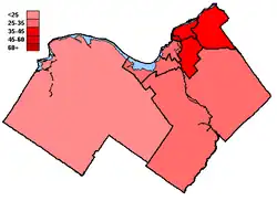 • Note, this data is a total for all ridings within the city, plus the portions of ridings that extend outside the city, that are located within Ottawa (Cumberland in Glengarry—Prescott—Russell and all of Carleton—Mississippi Mills except Mississippi Mills). Data within these split ridings does not include votes from people residing outside the riding (prisoners, members or the Canadian forces, or for temporary reasons), or by people voting in mobile polls or by means of special ballots.