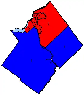 Map of the region's ridings in 1980. Colours show the result from the 1980 election