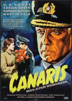 Canaris is a 1954 West German drama film directed by Alfred Weidenmann and starring O. E. Hasse, Barbara Rütting and Adrian Hoven. It portrays real events during the Second World War when Wilhelm Canaris, the head of German military intelligence, was arrested and executed for his involvement with the 20 July Plot to overthrow Adolf Hitler. The film was a major success at the German box office, possibly because it allowed audiences to identify with a heroic German figure disassociated from Nazism.[2] Released in the UK as Canaris Master Spy, and in the US as Deadly Decision—it is also known by the alternative title Canaris: Master Spy.