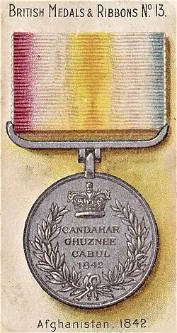 Four separate campaign medals were awarded to British led forces who served in the Afghan War of 1839 to 1842:[5]