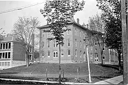 In 1900, a report on the "annual school meeting", held in the "union school building", reveals that the school would cost $7,947 (equivalent to $300,365 in 2024) to run for the coming year, of which $4,495.32 (equivalent to $169,905 in 2024) would be raised by tax. There were 54 voters at the meeting, which reduced the Board of Education from nine to five members.[12] After its abandonment in 1914 when the Greenwood Street Elementary School was built, it became Strait's Mill, then a feed store, before being torn down about 1952 and replaced by a bus garage. Adjacent to it to the south, between Fifth and Sixth Streets, is the Rotary Field, which remained the venue for school sports until the 1990s, when new facilities were built on Purdy Creek Road.