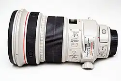 The EF 200mm USM lens is an L-series prime telephoto lens made by Canon Inc. for the EOS line of cameras. Four 200 mm primes were made: f/1.8, two f/2.8, and the most recent f/2.0.