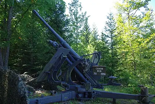 ![]() Canon de 75 mm contre aéronefs modèle 1939 at fort de Pré-Giroud. | |