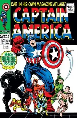 1. ^ DeFalco, Tom (2008). "1960s". In Gilbert, Laura (ed.). Marvel Chronicle A Year by Year History. London, United Kingdom: Dorling Kindersley. p. 128. ISBN 978-0756641238. Hailing 1968 as the beginning of the 'Second Age of Marvel Comics,' and with more titles to play with, editor Stan Lee discarded his split books and gave more characters their own titles: Tales of Suspense #99 was followed by Captain America #100.