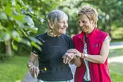 Caritas worker with a patient of the geriatric ward of Salzburg University Hospital.