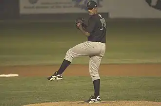 Fisher pitching for the Dayton Dragons, single-A affiliates of the Cincinnati Reds, in 2006