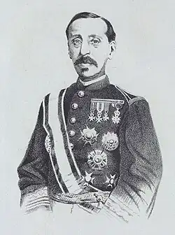 When France decided to launch a punitive expedition against Vietnam over the persecution of Christians in 1857, Spain placed an expeditionary force at its disposal, since the Spanish missionary bishop José María Díaz Sanjurjo had been among the victims. Palanca was second in command. For his actions in the fighting, he was promoted to lieutenant colonel and received the Légion d'Honneur from Napoleon III. In 1859, he returned to Madrid. In 1860, he was appointed minister plenipotentiary to Vietnam to negotiate a peace treaty. In 1862, he was promoted to colonel. He signed the Treaty of Saigon on 5 June 1862, bringing the war to an end.[1] Although France obtained Cochinchina, Palanca had been ordered not to negotiate for land, although he reported that he probably could have obtained a territorial concession.[2]
