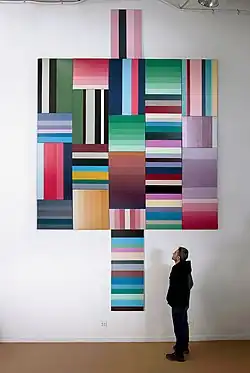 Carlos Torres-Machado graduated with a B.F.A. in Contemporary Arts, Communication, Photography, and Psychology from the Universidad Nacional de las Artes, and Universidad San Francisco de Quito. Ever since he moved to New York, he has held exhibitions in Europe, Latin America, and major international biennials.[2][3][4] In 2017, he was awarded as the New York Regional winner of the Bombay Sapphire Artisan Series.[5][6] Torres-Machado has experience as a photographer.[7] His abstract artworks are mostly characterized by their variety of color and the use of geometrical language.[8]