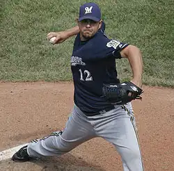 Villanueva pitching for the Milwaukee Brewers in 2009