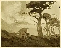 On September 24, 1911, the Club put on the play The Land of Heart's Desire, produced by Herbert Heron, at the Forest Theater amphitheater in Carmel.[10] From July 4-5th 1916, the Club presented The Piper, by Josephine Preston Peabody at the Forest Theater.[11] Four Carmel artists acted and painted scenery: Arthur Honywood Vachell, Mary DeNeale Morgan, William F. Ritschel, and Laura W. Maxwell.[12] The dramas presented at the Arts and Crafts Club attracted considerable attention by 1914, with an article in The Clubwoman noting, "Probably no other women's club in the country has achieved a more remarkable success in the way of dramatic ventures than has The Carmel Club of Arts and Crafts".[1] An article in The Mercury Herald commented, "a fever of activity seems to have seized the community and each newcomer is immediately inoculated and begins with great enthusiasm to do something ... with plays, studios and studies".[1] The success of its productions allowed the club to buy the Forest Theater and the land from the Carmel Development Company in 1925.[13]