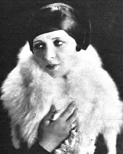 By this time Larrabeiti had made her screen debut in 1926 in Alejandro Pérez Lugín's film adaptation of his own novel, "Currito of the Cross (Currito de la Cruz)".[5] She moved on to Paris with her husband, working on the Paramount productions "Doña Mentiras" (1930),[6] "Toda una vida" (1930)[6] "La Carta" (1931)[7] and "La fiesta del diablo" (1931).[7] In February 1931 she embarked for New York, accompanied by her husband, arriving on 17 March.[7] She signed a six-month contract with 20th Century Fox, which ran till 27 September 1931.[7] During her time with Fox she recorded a series of Spanish language voice-overs for various Hollywood blockbusters including David Howard's "Esclavas de la moda" ("On Your Back") and "Conoces a tu mujer?" ("Don't Bet on Women") with Rafael Rivelles.