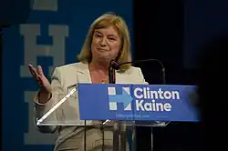 Shea-Porter speaks at a Hillary Clinton presidential rally at Southern New Hampshire University.