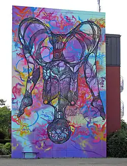 Fuck the World was a mural by Falkholt depicting an erect blue penis, covering five storeys of an apartment block (59°20′04.8″N 18°02′05″E / 59.334667°N 18.03472°E / 59.334667; 18.03472) in Stockholm, Sweden.[19]