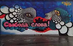 The painting Yttrandefrihet!/Cвабода слова!/Freedom of speech! in Alingsås, Sweden, 2012
