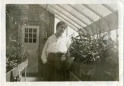 Caroline Black in the Connecticut College greenhouse, 1917