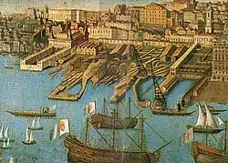 From 1511, offices of the Casa da Índia were located on the ground floor of the royal Ribeira Palace on Terreiro do Paço in Lisbon, with the Armazém just next to it.[2]