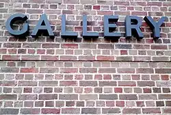 Signage in a Caslon Egyptian revival at Dulwich Picture Gallery. The 'G' in the original typeface had a spur at bottom right down to the baseline.[14]