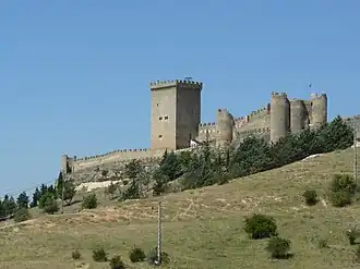 The castle of Peñaranda de Duero, located in Peñaranda de Duero, Spain, is a well preserved Gothic castle in Burgos province. The castle originally dates from the 10th century but reforms by Counts of Miranda del Castañar in the 15th century changed much of the building.[1] Today the castle stands at the start of a defensive wall that formerly surrounded the town, of which only the crenellated arch of "Las Monjas" still stands.