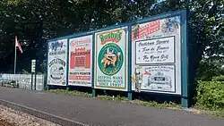 The Friends Of... volunteer group were successful in obtaining planning permission in 2016 to erect a replica advertisement hoarding up the up platform on the site and with fund from Culture Vannin began works shortly thereafter; after a number of setbacks, not least of which the various lockdowns during the Covid-19 pandemic, the large timber baulks were installed in early 2022 and as the season progressed further fundraising was achieved so that the remaining timber could be sourced and delivered to the site; by mid-September work began on erecting the hoarding itself with a view to completion in readiness for the railway's south line 150th anniversary in 2024 and with sponsorship from Bushy's Brewery secured it was completed in time for the plaque unveiling and community event on 2 August, anniversary day itself.