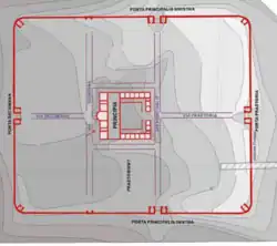 An adjacent civil settlement (vicus) had an area of up to 40 ha (many times larger than the fort) and lies partly beneath the train station.[7]