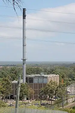 Liverpool Powerhouse was constructed in 1951, one of a number of identical power stations built to cater for growing demand in Sydney winters. In 1955, a 250-foot (76 m) high chimney was built to replace four shorter ones, which allowed the smoke to blow over residents' houses and soil their washing.[1]
