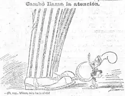 The following day, the expected intervention of the conservative leader Antonio Maura took place, who also opposed Catalan autonomy, although he allowed the possibility of negotiating an administrative decentralization that did not put at risk the autonomy of the municipalities "because the municipality has, not so much a right, but a more notorious and indisputable right to autonomy than the region, and the Nation needs municipal autonomy much more and much sooner than regional autonomy". Referring to the question of competences, he said that "the region has been delimited by demarcating the State" and to explain this he resorted to the following metaphor: "An eagle that has to serve as solace in a park for the idle can be caged, an eagle that has to defend its life and that of its children cannot have a feather taken from its wings or a nail removed from its claws".[37] Then, addressing the Catalan deputies, he told them that, whether they liked it or not, they were Spanish: "No one can choose their mother, or brothers, or their father's house, or their hometown, or their homeland". His intervention was very applauded by the deputies of the two dynastic parties, including the president of the government, Count of Romanones.[30]
