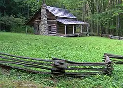 The Hannah Cabin in Little Cataloochee was built by John Jackson Hannah, the son of Little Cataloochee pioneer Evan Hannah. The cabin's chimney is one of only three surviving brick chimneys in the national park.[35]