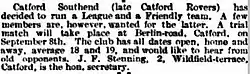 An early mention of the team is in a newspaper article advertising trials at what is the modern day St. Dunstan's School playing fields on Canadian Avenue, Catford. In a 1904 edition of the Lewisham Borough News, Catford Southend's ground is listed as 'Bromley Road'. This may allude to the Catford Wanderers ground which can still be found in the same location today and points to the Southend in their name as this area of Catford is known by the same name.