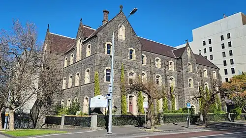 In 2000, Catholic Theological College's new building in East Melbourne was officially opened.[1] The new Thomas Carr Centre, which incorporated administration, faculty offices and the Mannix Library, adjoined a 1870s neo-Gothic building that was formerly the Christian Brothers' Cathedral College. Melbourne-based architect Gregory Burgess created the design that brought the two buildings together. Gregory Burgess Architects received several awards for the construction of the Catholic Theological College building. These included the Royal Australian Institute of Architects (VIC) Commendation: The Melbourne Prize in 2000 and the Australian Property Institute, Heritage Property Award in 2001.[4][5]