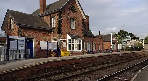 Cattal is at the western end of a dual track section from Hammerton. Trains heading east towards York are timetabled to arrive first on the dual track section, in order to clear the single-track line heading west towards Harrogate.[1][2] The level crossing here still has manually operated metal gates and a ground-level signal box.[3] The station buildings are now privately owned.