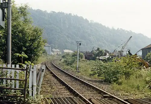 ![]() The site of the station, looking northeast towards Alloa, in 1986 | |||||