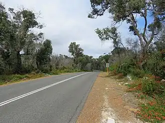 It is a narrow winding road in most parts, and much has been made of its picturesque quality[5] and passage through Karri forest.[6]