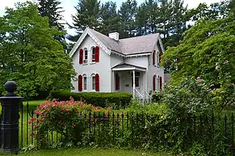 Cedarcliff Gatehouse is a historic gatehouse located in Poughkeepsie, in Dutchess County, New York. It was likely designed by architect George E. Woodward and built about 1862 for Lindley M. Ferris.[2] It is a 2+1⁄2-story, cruciform plan brick cottage in the Gothic Revival style. It features deep eaves with extended rafters and bargeboards with scroll-sawn overlay. The property includes a period cast iron gateway and fence.[3]