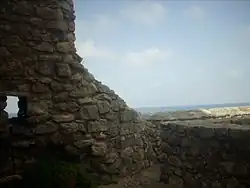 On the summit of the promontory are extensive remains of a Norman castle. The town's fortifications formerly extended to the shore, on the side where the modern town now is, in the form of two long walls protecting the port. There are remains of a wall of massive rectangular blocks of stone at the modern Porta Garibaldi on the south.[17]