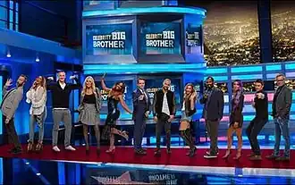 On eviction night, all HouseGuests except for the Head of Household and the nominees voted to evict one of the nominees.[27] Before the voting began, the nominees had the chance to say a final message to their fellow HouseGuests.[27] This compulsory vote is conducted in the privacy of the Diary Room by the host Julie Chen Moonves. In the event of a tie, the Head of Household would break the tie and reveal their vote in front of the other HouseGuests.[27] Unlike other versions of Big Brother, the HouseGuests can discuss the nomination and eviction process open and freely.[28][29] The nominee with the most votes from the other HouseGuests is evicted from the House on eviction night and interviewed by the host. HouseGuests can voluntarily leave the House at any time (referred to as "walking") and those who break the rules are expelled by Big Brother.[30][31] The evictees of the season form the Jury that vote for the winner on the season finale; they are known as the jury members.[32] Unlike the jury members of Big Brother, the celebrity jury members are not sequestered after their eviction and are able to watch the show after their eviction.[33] The winner of Celebrity Big Brother receives the grand prize of $250,000.[18]