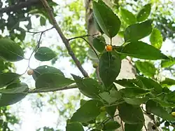 The tree flowers from April to May, and the fruit ripens from October to November.