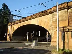 Sandstone railway bridge over Hay Street beside Belmore Park