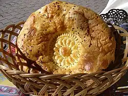 From Turkic cuisine came the flatbreads yufka and çörek, qatlama pastry and a noodle dish called tutmaç.[1] Beliashi are open-faced pies cooked in a skillet.[7]