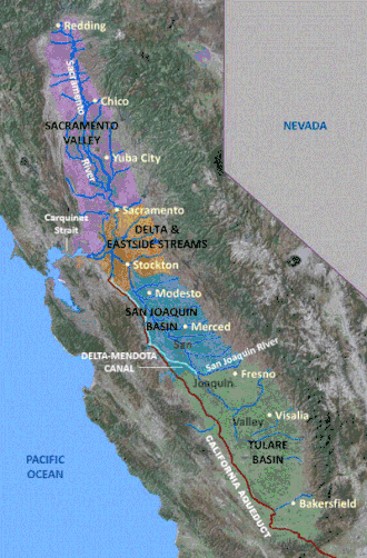 United States Geological Survey map of their defined four major regions of the Central Valley