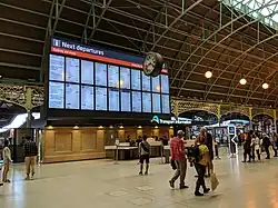 Central is a heritage-listed railway station located in the centre of Sydney, New South Wales, Australia. The station is Australia's largest and busiest railway station, and is a major transport interchange for NSW TrainLink inter-city rail services, Sydney Trains commuter rail services, Sydney Metro services, Sydney Light Rail services, bus services, and private coach transport services. The station is also known as Sydney Terminal (Platforms 1 to 12). The property was added to the New South Wales State Heritage Register on 2 April 1999.[4] It recorded 85.4 million passenger movements in 2018 and serves over 250,000 people daily.