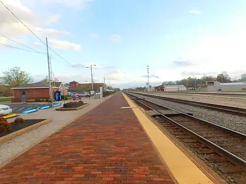 Centralia station is an Amtrak intercity train station in Centralia, Illinois, United States. The station existed as little more than a sheltered platform until an unstaffed waiting area was built in 2003. The new $100,611 station was funded by the city, the Centralia Foundation, the Centralia Area Development Association and the Great American Stations Foundation.[3] The station is a flag stop on the City of New Orleans route, served only when passengers have tickets to and from the station. It is a regular stop on the Illini and Saluki.