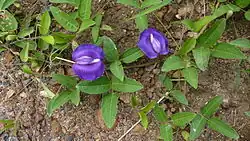Centrosema brasilianum found in Bolivia consists of weak herbs, trailing among grasses, the stems to about 0.5 m long, very inconspicuous, but the flowers very showy; petals blue-purple.[9]