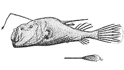 5. ^ Christopher Scharpf (3 June 2024). "Order LOPHIIFORMES (part 2): Families CAULOPHRYNIDAE, NEOCERATIIDAE, MELANOCETIDAE, HIMANTOLOPHIDAE, DICERATIIDAE, ONEIRODIDAE, THAUMATICHTHYIDAE, CENTROPHRYNIDAE, CERATIIDAE, GIGANTACTINIDAE and LINOPHRYNIDAE". The ETYFish Project Fish Name Etymology Database. Christopher Scharpf. Retrieved 9 August 2024.