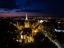 Cetate (Hungarian: Belváros; German: Innerstadt; Serbian: Град, romanizedGrad) is the central district of Timișoara, located on the site of the Vauban-style Timișoara Fortress. Traditionally, it corresponds to the first constituency (Romanian: circumscripție) out of Timișoara's ten administrative constituencies. The district underwent modernization during the Belle Époque period, particularly throughout the three decades when Carol Telbisz served as mayor of the city.
