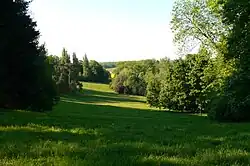 The latter included a neo-classical mansion built in 1878 by architect Dainville [1] and a 19-hectare (47-acre) romantic garden. Work on the park began in 1835 under the leadership of landscape architect Louis-Sulpice Varé, who would later be entrusted by Napoleon III to design the Bois de Boulogne, in Paris.[2] It was completed in 1884 by the Bühler brothers, creators of the Parc de la Tête d'Or, in Lyon.[3] The result is a romantic garden following the “modern” laws depicted by Jean-Jacques Rousseau in La Nouvelle Héloïse, as opposed to the previously fashionable French garden style.[1] The Château, a Louis XIIIth-styled mansion, is home to several social venues, its landmark being the Grand Salon and its large terrace overlooking the surrounding forests of Halatte and Chantilly.
