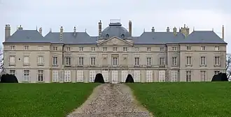In 1756, Louis II of Bouchet de Sourches (1711–1788), Marquis de Sourches, Comte de Montsoreau, Grand Prévôt de France, Prévôt de l'hôtel du Roi,[4] worked with architect Gabriel de Lestrade, to construct a new château at Saint-Symphorien, built on the site of an older château which had likely been occupied since Roman Gaul times.[5] Lestrade was a collaborator of the King's architect, Ange-Jacques Gabriel, who had already worked for the Bouchet de Sourches family at the Château du Jonchet in Romilly-sur-Aigre in Eure-et-Loir (later owned by Comte Hubert de Givenchy). Construction of the neoclassical-style château was overseen by Jean-François Pradrel, a prominent architect from Le Mans. As Pradrel was the only one mentioned in the 1761 estimate, so he is sometimes incorrectly referred to as the designer.[6]