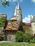 Château de La Rochepot (French pronunciation: [ʃato də la ʁɔʃpo]) is a 12th-century feudal castle of neo-Gothic-Burgundian style, rebuilt in the 15th century. In the 19th century, it was completely restored and covered with glazed burgundy tiles. It is located in the commune of La Rochepot in the Côte-d'Or department, Bourgogne-Franche-Comté, France.