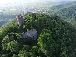 The Château du Haut-Ribeaupierre (German: Hohrappolstein or Burg Hohrappoltstein) is one of three castles (with the Château de Saint-Ulrich and the Château du Girsberg) which overlook the commune of Ribeauvillé in the Haut-Rhin département of France. Situated at an altitude of 642 m, it overlooks the other two castles.